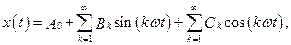 где k – номер гармоники (k =0, 1, 2, 3, …), Хk – амплитуда гармоники с номером k, ψ k – начальная фаза гармоники с номером k; 2) – двойным рядом Фурье, когда: