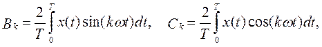 где A 0 – постоянная составляющая (нулевая гармоника); Bk, Ck – коэффициенты ряда k =1, 2, 3, … Для определения этих коэффициентов используются формулы: