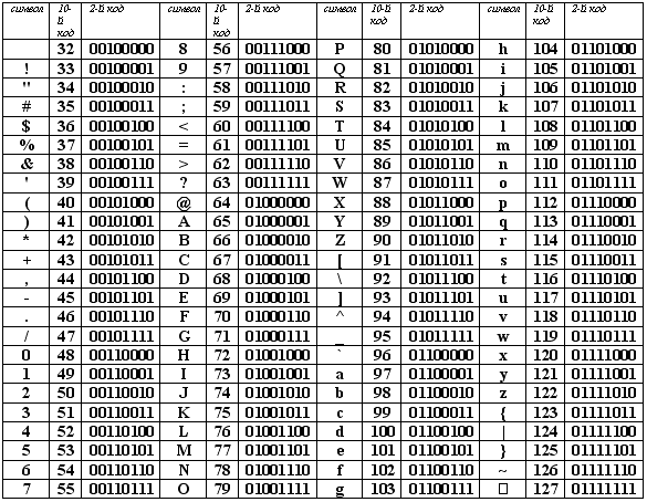 Обратите внимание! При использовании в тексте каждая цифра будет представлена своим кодом в соответствии с таблицей ASCII. В двоичной системе это – 00110101 00110111. При использовании в вычислениях код этого числа будет получен по правилам перевода в двоичную систему и получим – 00111001.