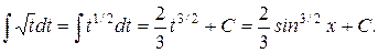 Примеры. Найти неопределенный интеграл: 1. Сделаем замену t = sinx, dt = cosxdt.