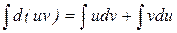 Этот метод основан на известной формуле производной произведения: (uv)¢ = u¢ v + v¢ u, где u и v – некоторые функции от х. В дифференциальной форме: d(uv) = udv + vdu Проинтегрировав, получаем: