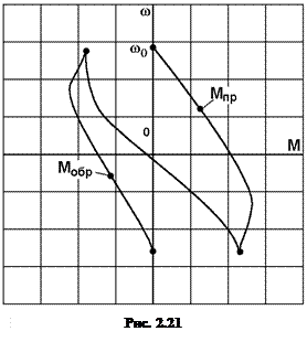 Момент, развиваемый двигателем, определяется суммой моментов Mпр и Mобр. На (рис. 2.20) показаны механические характеристики двигателя, при несимметрии питающего напряжения – уменьшается как скорость w двигателя под нагрузкой, так и пусковой момент машины.