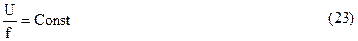 Для объектов управления с линейным вентиляторным моментом Мс=k× w необходим закон управления Наиболее широкое практическое применение частотный способ получил для объектов управления требующих регулирования при M=Const. Учитывая зависимость индуктивного сопротивления статора от изменения частоты закон управления становится нелинейным и отличным от (23), причем отличие зависит от мощности машины. Закон управления отличается от (23) также при ограничении критического момента Mк двигателя в зависимости от настройки или на уровень Mкр.д или Mкр.г.