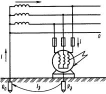 Напруга на корпусі буде максимальною при струмі короткого замикання Iк.з Uн.мах = Iк.з × Zп Ця напруга на корпусі не повинна перевищувати допустиму напругу дотику (42 В, а в особливо несприятливих умовах 12 В) Uн.мах = Uд.доп Uд.доп - допустима напруга дотику; Для зниження напруги корпусу необхідно зменшити опір нульового провідника (збільшити його січення або прокласти паралельно кілька провідників) або застосувати повторне заземлення нульового провідника. При наявності повторного заземлення нульового захисного провідника напруга відносно землі на корпусі обладнання: Uк = Iк.з × Zп ((Rп /(R0+ Rп) , де Rп - опір повторного заземлення, Ом R0 - опір нейтралі трансформатора, Ом.