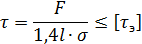 Из рисунка видим, это усилие воспринимают два шва и условие прочности примет вид: