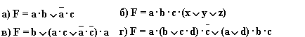 5.14. а) b•c; б) a; в) c•(a v b) v a•b (Указание: повторить четвертое логическое слагаемое 3 раза); г) a v c. 5.15. а) a; б) a•b; в) a; г) a•b; 5.16. а) a v c; б) 5.18. 5.19. Равносильны: б), в), д); 5.21. Упрощенные функции: 5.22. Функции проводимости упрощенных схем: 5.23. Аня вырастила маргаритки, Роза – анютины глазки, Маргарита – розы. 5.24. “Жигули”, номер начинается с семерки. 5.25. Ирена – победитель олимпиады по математике, Тимур – по географии, Камилла – по физике, Эльдар – по литературе, Залим – по информатике. 5.26. Пломбир с клубникой. Пояснение. Два других возможных варианта – шоколадное с орехами и шоколадное с бананами, не подходят по условию задачи (число вариантов, в которых не нравятся и тип мороженого и наполнитель, в этих случаях равно двум вместо одного). 5.27. Шумахер пришел первым, Кулхардт – вторым, Хилл – третьим и Алези – четвертым. Пояснение. Шумахер не четвертый, так как он пожимал четвертому руку; он не второй и не третий, так как пилоты, занявшие эти места поливали друг друга шампанским в то время как он пожимал руку. Следовательно, Шумахер первый. Далее, раз Хилл мокрый, то он занял одно из призовых мест, но не первое и не второе (поздравлял пилота, занявшего второе место). Следовательно, Хилл – третий. Кулхардт занял не четвертое место, так как он втаскивал на пьедестал пилота, занявшего четвертое место. Следовательно, он второй. 5.28. Добрыня Никитич. 5.29. Есть две возможности: 5.30. При отказе второго двигателя нельзя продолжать полет. 5.31. Первое место занял Саша, второе – Андрей, третье – Дима, четвертое – Виктор. 5.32. В экспедицию следует включить: аэронавтом – Геррети, космонавигатором – Кларка, биомехаником – Фриша, энергетиком – Депардье, врачом – Хорхеса, астрофизиком – Леонова.