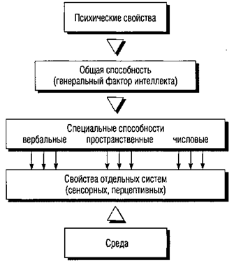 Проблема способностей существует в психологии с конца XIX века, когда появились первые попытки измерения способностей с помощью тестов. Одним из первых тестов способностей была шкала измерения интеллекта Бине и Симона, созданная в 1905 г., которая измеряла 30 разнообразных способностей от сенсомоторной координации до конструирования предложений и предназначалась длядетей от 2 до 12 лет. Таким образом, с самого начала предполагалось, что способности — это сложное многофакторное образование. Способности — это индивидуально-психологические особенности человека, обеспечивающие легкость усвоения и успешность выполнения какой-либо деятельности. Во-первых, способности не сводятся к тем знаниям, умениям, или навыкам, которые выработаны у человека. В них включаются те показатели, которые являются условиями успешности деятельности. Во-вторых, о способностях свидетельствует высокий темп усвоения знаний, умений, навыков, необходимых для деятельности. В-третьих, о способностях свидетельствует высокий творческий уровень деятельности, оригинальность, новизна. В отношении состава и структуры способностей в психологии нет единой точки зрения. Так, согласно концепции Шадрикова, способности можно определить как свойства функциональных систем, реализующих отдельные психические функции, имеющие индивидуальную меру выраженности, проявляющиеся в успешности и качественном своеобразии деятельности. Психические способности — это свойства нервной системы, в которой реализуется функция отражения объективно существующего мира. Эта способность ощущать, воспринимать, запоминать, мыслить. Общие свойства нервной системы проявляются в продуктивности деятельности, работоспособности, активности, произвольной и непроизвольной регуляции, мнемических способностях. А вербальные и невербальные способности определяются специализацией и взаимодействием полушарий. Попытка систематизации и анализа способностей предпринята Дружининым. Общие способности он определяет как способности получать, преобразовывать и применять знания. А в этом наиболее важную роль играет интеллект (способность решать задачи на основе применения имеющихся знаний), обучаемость (способность приобретать знания) и креативность (способность преобразовывать знания с участием воображения и фантазии). Интеллект многими исследователями рассматривается как эквивалент понятия общей одаренности, как способность к обучению и труду вообще, независимо от их содержания. Такой точки зрения придерживаются Бине, Спирмен, Рубинштейн. Интеллект рассматривается как механизм адаптации к среде, например, Пиаже пишет о том, что развитый интеллект проявляется в универсальной адаптивности, структурировании равновесных отношений между индивидом и средой. Наиболее полным, с содержательной точки зрения, является определение интеллекта Векслера, он понимает интеллект как способность к целесообразному поведению, рациональному мышлению и эффективному взаимодействию с окружающим миром. Векслер вслед за Верноном придерживается иерархической модели интеллекта, в которой выделяется фактор общего интеллекта, или генеральный (G), основные групповые факторы: вербальный и невербальный (или пространственный, практико-технический), а также парциальные факторы (включающие отдельные перцепти