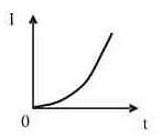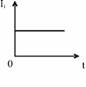 По параллельным металлическим проводникам, расположенным в однородном магнитном поле, с постоянной скоростью перемещается проводящая перемычка, длиной (см. рис.). Если сопротивлением перемычки и направляющих можно пренебречь, то зависимость индукционного тока от времени можно представить графиком …