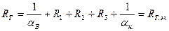 Так как наружная стена представляет собой многослойную ограждающую конструкцию, то сопротивление теплопередачи определяется по следующей формуле: RT= Где