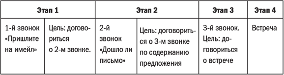 Закрытие обязательно! Помните правило: всегда закрывай? «Дошло ли письмо» – это просто повод позвонить еще раз, причем обоснованный. Потому что письма, бывает, теряются, попадают в спам, не доходят из‑ за ошибки в адресе. Редко кто возражает против такого звонка. Я называю это методом двух звонков. Звонков может быть и больше двух, но первые два обязательные, поэтому «двухзвонковый». К этому варианту прибегают, если другие, более «короткие» варианты не срабатывают. Он состоит из нескольких этапов.