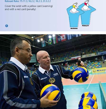 COMPETITION/ CONTROL AREA The Competition / Control Area is a corridor around the playing court and free zone, which includes all spaces up to the outer barriers or delimitation fence. See diagram/fig 1a. ZONES These are sections within the playing area (i.e. playing court and free zone) as defined for a specific purpose (or with special restrictions) within the rule text. These include: Front Zone, Service Zone, Substitution Zone, Free Zone, Back Zone, and Libero Replacement Zone. AREAS These are sections of the floor OUTSIDE the free zone, identified by the rules as having a specific function. These include: warm-up area and penalty area. LOWER SPACE This is the space defined at its upper part by the bottom of the net and the cord joining it to the posts, at the sides by the posts, and the bottom by the playing surface. CROSSING SPACE The crossing space is defined by: - The horizontal band at the top of the net - The antennae and their extension - The ceiling The ball must cross to the opponent's COURT through the crossing space. EXTERNAL SPACE The external space is in the vertical plane of the net outside of the crossing and lower spaces. SUBSTITUTION ZONE This is the part of the free zone through which substitutions are carried out. UNLESS BY AGREEMENT OF FIVB This statement recognizes that while there are regulations on the standards and specification of equipment and facilities, there are occasions when special arrangements can be made by FIVB in order to promote the game of Volleyball or to test new conditions. FIVB STANDARDS The technical specifications or limits as defined by FIVB to the manufacturers of equipment. PENALTY AREA In each half of the competition/control area, there is a Penalty Area located behind the prolongation of the end line, outside the free zone, which should be placed a minimum of 1.5 metres behind the rear edge of the bench. FAULT a) A playing action contrary to the rules. b) A rule violation other than a playing action. DRIBBLING Dribbling means bouncing the ball (usually as a preparation to tossing and serving). Other preparatory actions could include (amongst others) moving the ball from hand to hand. TECHNICAL TIME-OUT This special mandatory time-out is, in addition to time-outs, to allow the promotion of Volleyball, analysis of the play and to allow additional commercial opportunities. Technical Time-Outs are mandatory for FIVB, World and Official competitions. BALL RETRIEVERS These are personnel whose job it is to maintain the flow of the game by rolling the ball to the server between rallies. RALLY POINT This is the system of scoring a point whenever a rally is won. INTERVAL The time between sets. The change of courts in the 5th (deciding) set is not to be regarded as an interval. RE-DESIGNATION This is the act by which a Libero, who cannot continue or is declared by the team " unable to play", has his/her role taken by any other player (except the regular replacement player) not on the court at the moment of the re-designation. REPLACEMENT This is the act by which a regular player leaves the court and either Libero (if more than one) takes his/her place. This can even include Libero for Libero exchanges. The regular player can then replace either Libero. There must be a completed rally between replacements involving any Libero. INTERFERING Any action which will create an advantage against the opponent team or any action which prevents an opponent from playing the ball. OUTSIDE OBJECT An object or a person which while outside the playing court or close to the limit of the free playing space provides an obstruction to the flight of the ball. For example: overhead lights, the referee's chair, TV equipment, scorer's table, and net posts. Outside objects do not include the antennae since they are considered as the part of the net. SUBSTITUTION This is the act by which one regular player leaves the court and another regular player takes his/ her place. INDEX