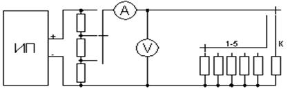 Схемы измерения реализуемые в зависимости от положения переключателя «род работы» лабораторного макета.
