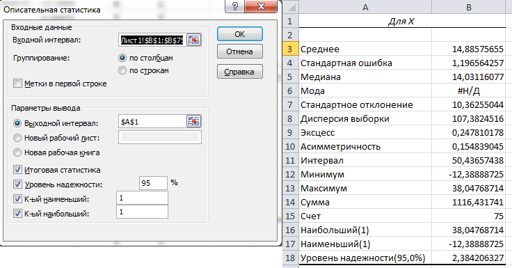 Рисунок 4 – Использование функции ДОВЕРИТ для случайной величины X