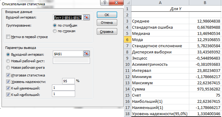 Рисунок 5 – Использование функции ДОВЕРИТ для случайной величины Y