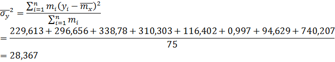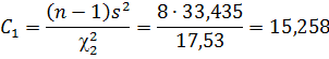 49, 003< Среднее квадратическое отклонение для случайной величины X: 7, 0002< Определение доверительного интервала для дисперсии случайной величины Y. По величине доверительной вероятности По величинам Определяем границы доверительного интервала: