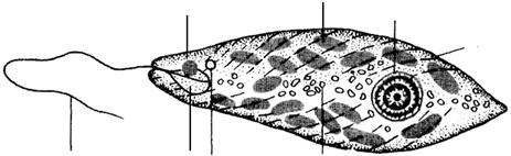 2. Ознайомитись з особливостями будови евглени зеленої. Зробити необхідні позначення до рисунка.