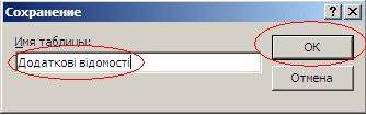 Таблиця " Додаткові відомості"