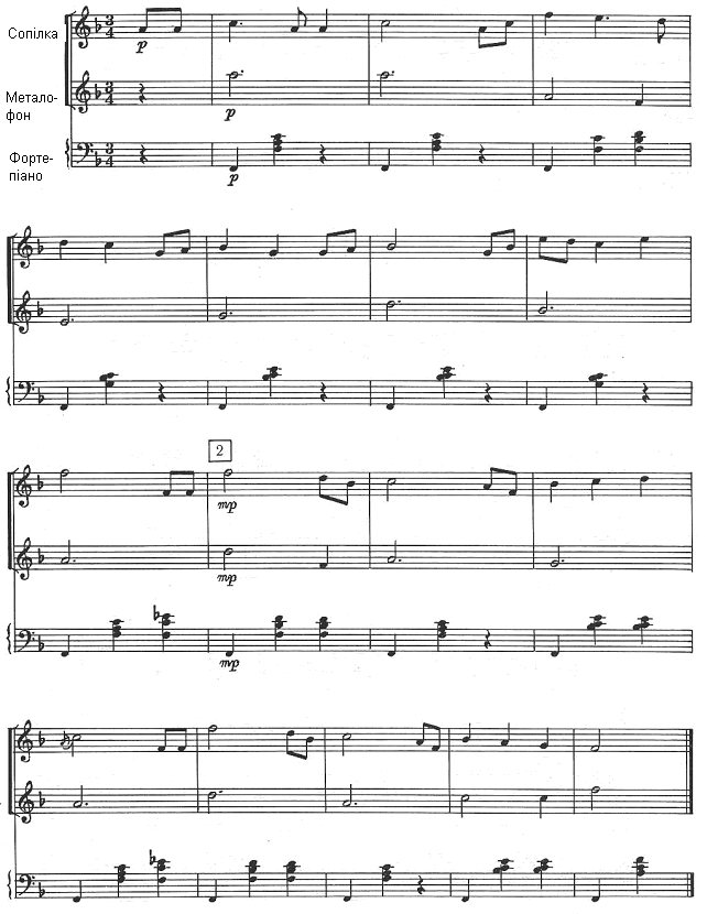 Спостереження показують, що в 1 класі доцільно познайомити учнів і вивчити прийоми гри на різних ударних інструментах, знаходити варіанти ритмічного акомпанементу до пісень, які вивчаються та п’єс для слухання (А.Філепенко “Веселий музикант”, М.Лисенко “Пісня Лисички”, П.Чайковський “Марш дерев’яних солдатиків”). Кожен раз при знайомстві з новим інструментом необхідно, сказавши декілька слів про звуковидобування, показати дітям, як це відбувається. Після цього давати їм в руки. Для зручності ознайомлення і вивчення прийомів гри на ударних інструментах доцільно умовно розділити їх на дві групи: інструменти, які мають певну висоту звучання, їх можна назвати “мелодичними інструментами (металофон, ксилофон), всі інші – шумовими або “ритмічними”.