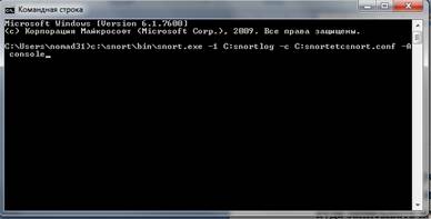 Завершив процесс установки, Snort требуется протестировать. По умолчанию исполняемому файлу Snort необходимо сообщить два адреса: куда записывать журналы и где найти файл конфигурации (snort.conf). Эту информацию предоставляет пользователь при запуске Snort из командной строки с помощью ключей -l и -c соответственно. Например, команда snort -l С: snortlog -c С: snortetcsnort.conf -A console