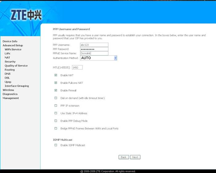 В строке PPP Username: llxxxxx - введите логин, выданный вам при подключении. После выполненных действий нажмите «Next».