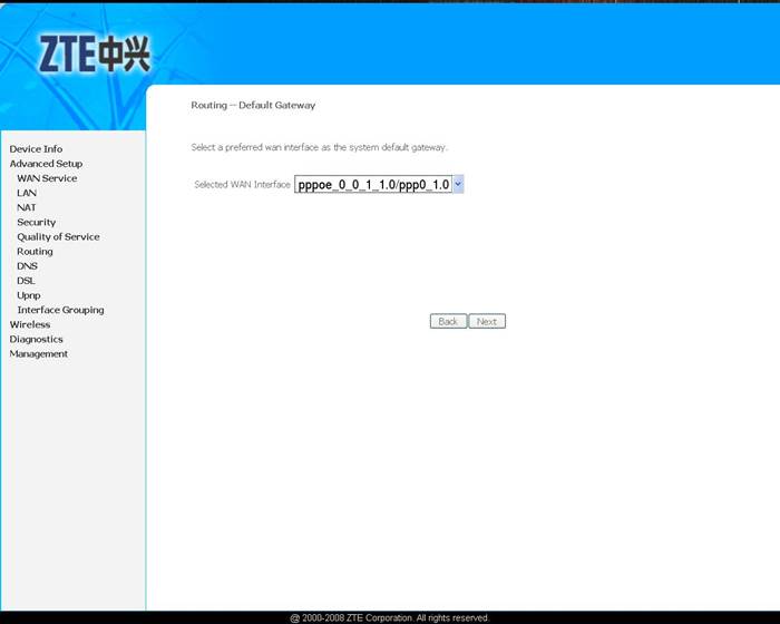 Выберите ссылку Advanced Setup -> WAN для настройки доступа в Интернет