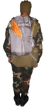 Ранець виготовлений з авіазенту та служить для укладання у нього боєприпасів, індивідуальних засобів протихімічного захисту, продовольства, комбінованого казанка та засобів особистої гігієни. Ранець має форму коробки, в верхній частині якої є кришка та три клапани. До бокових стінок ранця пришиті кишені, які призначені для укладання гранат до ручного гранатомету, ручних протитанкових гранат, патронів, вибухових речовин, індивідуальних засобів протихімічного захисту та іншого майна. В середині бокових кишень нашиті мали кишені для укладання детонаторів гранат ручного гранатомету. Для кріплення до рюкзака плащ-намету в середині бокових кишень та дна ранця пришиті стрічки-зав’язки, а з зовнішньої сторони поставлені блочки. На тильну стінку пришиті стрічки з пряжками та карабінами для з’єднання з плечовими ременями. З метою зберігання форми в передню стінку ранця вшита рама жорсткості, а в кришку – пластини жорсткості. Клапани, кришка ранця та кришки бокових кишень застібаються на клеванти. Плечові ремені виготовлені з бавовняної стрічки та призначені для кріплення ранця і сумок та для утримання поясного ременя в визначеному положенні на парашутисті-десантнику. Одні кінці ременів пришиваються до ранця, а до інших прикріпляються сумки: до правого – сумка для магазинів автомату, до лівого – сумка гранат. Ремені мають два ватники (на правому пришита кишеня для черенка саперної лопати), грудну перемичку з карабіном, дві пряжки для переведення рюкзака в положення „ під парашут ” та два на півкільця, до яких пристібаюся карабіни кутових стрічок. Сумка для магазинів автомата виготовлена з авіазенту та призначена для укладання магазинів автомата. На сумці настрочена пряжка для кріплення до правого плечового ременя, та дві стрічки для кріплення на поясному ремені. Кришка сумки застібається на дві клеванти. Сумка для ручних гранат виготовлена з авіазенту з підкладкою з двунитки гладко фарбованої та призначена для укладки гранат Ф-1, РГД-5, РГН, РГО або патронів у пачках. Всередині сумки знаходиться перегородка з чотирма комірками, із яких два великі призначені для запалів гранат, два малі – для запалів ручних протитанкових гранат. С зовнішньої сторони сумки є пряжка для кріплення її до лівого плечового ременя. Сумка кріпиться до поясного ременя за допомогою двох стрічок кріплення. Кришка сумки застібається на два клеванти. Чохол для лопативиготовлений з авіазенту та призначений для кріплення малої саперної лопатки на поясному ремені у бойовому положенні рюкзака та у положенні „ під парашут ”. Чохол кріпиться до поясного ременя за допомогою двох стрічок кріплення. Клапан чохла застібається на два клеванти. При укладці в рюкзак предметів бойової викладки, в першу чергу заповнюється ранець рюкзака. Укладка предметів в ранець проводиться в наступній послідовності. На дно ранця укладається продукти харчування, потім казанок комбінований, патрони в пачках, засоби протихімічного захисту, рушник, мило та ложка. Одну з бокових кишень можна використовувати для розміщення нижньої частини зброї, другу, в залежності від спеціальності десантника. При укладанні гранати до РПГ-7Д, покласти у малу кишеню детонатор та зав’язати її. Покласти у бокову кишеню корпус гранати балістичним наконечником догори, пенал з пороховим зарядом і с