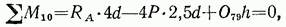 Здесь М представляет собой момент сил, действующих на отсеченную часть фермы, относительно моментной точки,