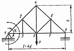 Рис. 4.20 При этом уравнение моментов составляется таким образом, что в состав его входят только действующие на ферму внешние силы и одно определяемое усилие в рассчитываемом элементе. В этих случаях возможная ошибка при определении усилия в одном элементе не оказывает влияния на усилие в другом элементе.