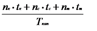 где nк, nс, nт – количество капитальных, средних и текущих ремонтов в межремонтном цикле (количество капитальных ремонтов в цикле равно 1); tк, tc, tт – продолжительность ремонтов (капитального, среднего, текущего); Ткап – длительность межремонтного цикла, ч. Количество средних и текущих ремонтов: nс= nт= где Тс, Тт – время работы между средними и текущими ремонтами, ч.