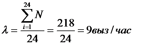 где N– общее число поступающих вызовов в течение суток. Средняя интенсивность поступающих на ЦУКС вызовов определяется как