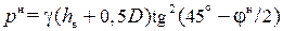 Если глубина заложения тоннеля Н меньше двойной высоты свода обрушения (Н < 2 h в) либо толща устойчивых грунтов над тоннелем h< 2 h в и выше залегают грунты, не обладающие способностью к сводообразованию, а также при расположении тоннеля кругового очертания в слабых глинистых грунтах, в песках, илах и плывунах, переходящих в условиях эксплуатации в разжиженное состояние, нормативную вертикальную нагрузку от горного давления принимают равной нагрузке от веса всей толщи грунтов над тоннелем (см. рис. 4.1, б).