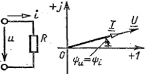 4. при помощи комплекс. чисел.. +1 –ось действ.чисел; +j – мнимые числа(). I·=I’+I”-алг.форма записи, где I’=Icosφ, I”=Isinφ. I =Icosj+jIsinj - тригон форма записи. Ф-ла Эйлер: ejj=cosj+jsinj. I =Iejj-показат-я форма Переход от алг формы к тригоном: I=Ö (I’2+I”2), j=arctg(I”/I’)при I”> 0; j=arctg(I”/I’+180)при I”< 0. 4. цепь перемен тока с резистором. Вектор диагр. з.Ома в компл форме.
