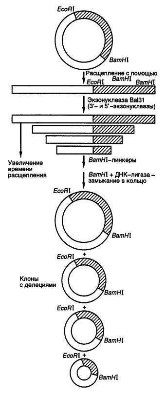 Рис. II.16. Получение делеций с помощью нуклеазы Bal31