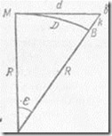 Для обработки результатов геодезических измерений и при получении топографических материалов (крупномасштабного изображения на бумаге физической поверхности Земли) ее точки предварительно проецируют (относят) отвесными линиями на поверхность более простую, чем земная. Такой поверхностью относимости могут быть поверхности референц-эллипсоида, шара, плоскости. Проецирование точек линиями, перпендикулярными к поверхности относимости называют ортогональным. Получить ортогональную проекцию земной поверхности на плоскость наиболее просто, поскольку при этом не нужно учитывать кривизну Земли. Примем Землю за шар радиуса R (рис. 8). Сравним длину дуги MB=D с длиной касательной Mb = d. Получим d=Rtgепсилонд и D=Rепсилонд. Обозначим разность (d — D) через дельтаd, тогда дельтаd = R(tg e — e). Ограничимся первыми двумя членами этого убывающего ряда и пренебрежём последующими из-за их малости, тогда дельтаd=Re^3/3=d^3/3R^2 При R =15000 км и d= 10 км, получим Дельтаd/d=1/3*36*10^4=1/1000000