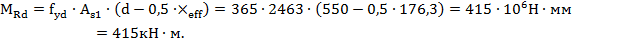 Определяю эффективную высоту сжатой зоны бетона: