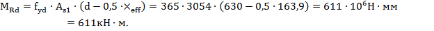 ω - характеристика сжатой зоны бетона, ω =kc-0, 008 ξ =0, 26≤ ξ lim=0, 542 – условие соблюдается. Расчёт ведём по алгоритму для прямоугольных сечений с одиночной арматурой. 4. Определяю несущую способность железобетонной балки:
