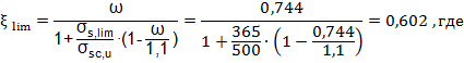 3.По значению α 0=0, 338 по таблице определяю значение ξ =0, 43 и η =0, 785. Определяю граничную высоту сжатой зоны бетона ξ lim (см.п7.1.2.4. СНБ 5.03.01-02):