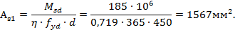 Ответ: площадь рабочей продольной арматуры 1567мм2.