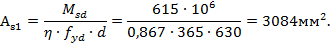Ответ: площадь рабочей продольной арматуры 3084мм2.