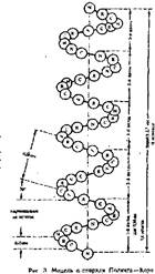 1) спиральная конфигурация i поли пептидной цепи, имеющая винтовую симметрию; 2) образование водородных связей между пептидными группами каждого первого и четвертого аминокислотных остатков; 3) регулярность витков спирали; 4) равнозначность всех аминокислотных остатков в о-спирал и независимо от строения их боковых радикалов; 5) боковые радикалы аминокислот не участвуют в образовании а-спирали.