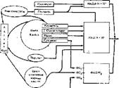 Пнруватд^гидрргеуаза состоит из 24 молекул фермента, каждая из которых содержит одцн остаток тиа- мцндуфосфата, являющегося коферментом п нру в атдегидроген аэ£ 4. Общая масса этого фермента примерно 2, 16 • Ю® Итак, все ферменты пируватдегидрогеназного комплекса двухкомпо- нентны и содержат прочно связанные коферменты: тиаминпирофосфат (ТПФ), липоевую кислоту (ЛК С |) и ФАД. Кроме того, в работе комплекса, т. е. в окислении пирувата, принимают участие два внешних (не связанных с комплексом) кофермента: KoA-SH и НАД+, которые играют роль акцепторов продуктов окисления пирувата. ПнруЬат последовательно подвергается действию ферментов пируватдегидрогеназного комплекса. Обозначив ферменты комплекса: Е, -ТПФ — пируватдегидрогеназа, Е^ЛК5^! —дигидролипоилацетилтрансфераза, Е3-ФАД — дигидролипоилде- гидрогеназа, можно записать стадии окисления пирувата следующим образом. н 1) Е.-ТПФ + СН, —С—СООН — Е, -ТПФ—СН, + СО* «1 о йн н 2) Е, -ТПФ—С—CHs-t-Ej-ЛК^! -»Е, -ЛКС ' +Е, -ТПФ Xs ь—С—СНг Ь 4) Е»-ЛК< + Е, -ФАД —Е, -ФАД-Н, + Е}-ЛК< | SH s 5) Е9-ФАД. Hs + НАД* -v Е„-ФАД + НАД. H + Н* На первой стадии действует пируватдегидрогеназа, в результате образуется конечный продукт обмена СОа (декарбоксилирование пирувата) и гидро- оксиэтнльное производное, связанное с ТПФ в активном центре пируват- дегидрогеназы. Другой фермент — дигидролипоилацетилтрансфераза катализирует две стадия: это восстановление дисульфидной группы липоевой кислоты за счет гндроксиэтнла и перенос ацетильной группы на внешний KoA-SH (стадии 2 и 3). В результате образуется восстановленная форма фермента — дигндролипоил-Е2 и конечный продукт окисления пирувата в В общем виде уравнение окисления пирувата ферментами пируватдегидрогеназного комплекса выглядит так: