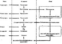 В фолликулиновую фазу яичников выделяющиеся эстрогены вызывают интенсивную пролиферацию эпителия слизистой (пролиферативная фаза маточного цикла). При этом повышаются возбудимость и сократительная активность миометрия. В лютеиновую фазу яичников повышенная секреция прогестерона приводит к разрыхлению эндометрия, железистый эпителий которого выделяет слизистый секрет. Поэтому данную фазу маточного цикла называют секреторной, а возникшие изменения слизистой — прегравидными, т. е. сходными с Г изменениями на ранних стадиях беременности. Кроме того, прогестерон тормозит возбудимость и сократительную способность миометрия. Все изменения в матке, вызванные прогестероном, облегчают фиксацию оплодотворенной яйцеклетки и имплантацию'ее в слизистую матки. Прекращение секреции прогестерона желтым телом, при его инволюции в яичниках, влечет за собой сморщивание разросшегося эндометрия, спазм питающих его кровеносных капилляров и последующее отторжение слизистой, сопровождающееся кровотечением (менструацией). Эту фазу маточного цикла называют менструальной. Ниже показано соответствие фаз яичникового и маточного цикла: ^o.i.ijmjjiипоиаи I |ролнфератнвная (секреция эстрогенов) Лютенновая Секреторная (секреция прогестерона) (отсутствие секреции эстрогенов и прогестерона) Если происходит оплодотворение яйцеклетки и она имплантируется в слизистую, то трофобласт уже через сутки после имплантации оплодотворенной ' яйцеклетки начинает выделять хорионический гонадотропин, который, действуя подобно лютропину гипофиза, стимулирует рост, развитие и секреторную функцию желтого тела яичника. Инволюции желтого тела не наблюдается и наступает беременность. Эндокринная функция плаценты. Во " время беременности формируется своеобразный эндокринный орган — плацента, который секретнрует белковые и стероидные гормоны в организм матери. В плаценте синтезируются такие белковые гормОны, как хорионический гонадотропин (обладающий активностью лютропина), плацентарный лактоген, или соматомаммотропин (обладающий наряду с лактотропным и лютеотропным действием, подобно про- лактину гипофиза, еще и соматотропнон активностью), тиреотропин (с выделением которого связывают повышенную функцию щитовидных желез у беременных). Биосинтез стероидных гормонов имеет ряд особенностей. Главная из них состоит в том, что в этом процессе участвуют как плацента, так и тканн плода. Это дало возможность Дисфалузи ввести понятие фетоплацентарной системы (плод—плацента), участвующей а синтезе и секреции стероидных гормонов. В фетоплацентарной системе синтезируются прогестерон, эстрадиол, эстрон, эстриол и тестостерон. Остальные стероидные соединения образуются в небольших количествах. Упрощенно биосинтез основных стероидных гормонов показан на рис. 78. В плаценте холестерин превращается через прегненолон в прогестерон, секретирующийся в кровь матери. Предшественники для биосинтеза в плаценте остальных стероидных гормонов могут образовываться только в тканях плода. К этим предшественникам относятся дегидроэпиандростеронсульфат (ДГЭАС), синтезирующийся из прегненолона в надпочечниках плода, и 16-а-гидроксьдегидроэпиандростеронсульфат, являющийся продуктом гидро- ксилирования ДГЭАС в печени плода. Из первого в плаценте синтезируются эстрон, эс