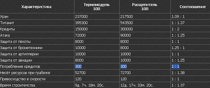 2) Артиллерия: термомодули – расчепители Значительной определяющей разницы я не вижу, что лучше строить. Единственное что может решить, что Щепки дают немного большую атаку при незначительно увеличении стоимости. Для секторов с 5 ур. Шахтами лучше строить термомодули, с 5 титиновими Расщепители. Но значительной разницы не вижу.