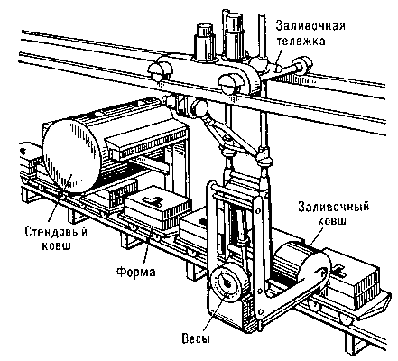 Рис. 4. Установка для автоматической заливки форм на конвейере завода Г. Фишер (Швейцария).