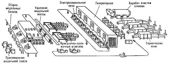 Рис. 6. Комплексно-автоматизированный цех литья по выплавляемым моделям с годовым выпуском 2500 т отливок в год.