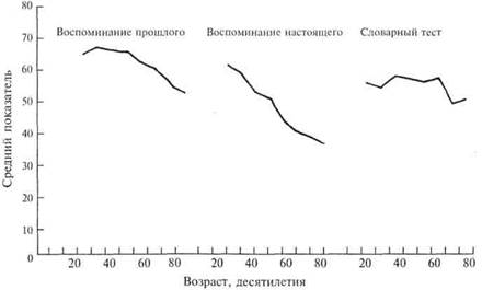 Рис. 50. Возрастные различия в вербальных субтестах и субтестах на костру- ирование по Векслеровской шкале умственных способностей взрослых. (Данные из Доппельта и Валас, 23, с. 322.) ^ 316 Дифференциальная психология метическом тесте возрастное снижение значений также сравнительно небольшое. В тестах на конструирование символико-циф-ровой тест показывает с увеличением возраста самое большое снижение показателей. Эти данные, полученные по шкале Векслера, а также Век-слера—Белльвью с помощью рассмотренных субтестов, соответствуют результатам многих других исследований, использующих самые разнообразные тесты. Одним из наиболее стабильных результатов тестирования взрослых являются результаты словарных тестов (5, 36, 43, 76, 78, 99, 105). По этой причине стало обычной практикой использование показателей словарных тестов в качестве основного показателя действительного уровня умственных способностей индивида, в сравнении с которыми могут измеряться результаты других функций (ср. 1, гл. 13). Многие словарные тесты имеют большой набор вариантов, из которых испытуемый должен правильно выбрать нужный синоним. В тестах на индивидуальные умственные способности, таких как Стэн-форд—Бине и шкала Векслера, словарные субтесты требуют от испытуемого определять каждое слово. При этом любой выбор, близкий к правильному значению слова, обычно считается приемлемым. Возможно, поэтому самый требовательный тест на знание слов, в отличие от обычных словарных тестов, может показать возрастное снижение результатов. Существуют данные о том, что, например, у психотиков показатели обычных словарных тестов могут не показывать ухудшение умственных способностей, в то время как качественный анализ типов определений, которые дают испытуемые, показывает значимое снижение данных способностей (18, 27). В тестах, в которых наиболее важным является скорость выполнения задания, лица пожилого возраста обычно имеют затруднения. Это нашло свое подтверждение во время Стэнфор-дского исследования периода поздней зрелости (60). Когда 433 индивидам, прошедшим скоростную форму теста Отиса, предложили пройти другую форму данного теста без ограничения во времени, то у испытуемых до 60-летнего возраста снижение возрастных значений было минимальным. Однако у испытуемых, чей возраст находился в пределах от 60 до 80 лет, снижение показателей было более крутым при прохождении даже нескоростной формы теста. Процедура, предложенная Лоржем (56), Возрастные различия 317 отличалась от предыдущей, рассмотренной выше. Для выравнивания условий прохождения исследования, представляющего собой простой силовой тест без ограничения во времени, все испытуемые были разбиты на три возрастные группы: от 20 до 25 лет, от 27, 5 до 37, 5 лет и от 40 до 70 лет и старше. Когда те же испытуемые были протестированы с помощью шкалы Армейс-кая-альфа и Отисом, то, чем старше была возрастная группа испытуемых, тем большее снижение результатов она показала. Необходимо отметить, что регрессивный эффект (ср. гл. 7), полученный в этом исследовании, может рассматриваться в качестве причины, объясняющей групповые различия в показателях при проведении тестов на скорость. Особого внимания заслуживает исследование Гурвица (35), использовавшего в равной степени шкалы Векслера—Белльвью, Шкалу Армейская-альфа и Армейская-бета. Гурвиц о