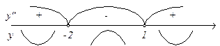 Теорема 4.1. (достатня умова опуклості та увігнутості функції). Нехай функція Теорема 4.2. (ознака точки перегину). Якщо Приклад 4.1. Визначити інтервали опуклості та увігнутості, точки перегину графіка функції