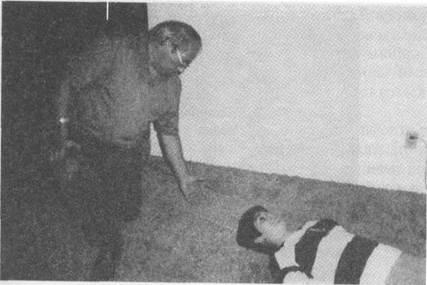 Фото 2: На этой фотографии показано как измерять энергию чакры большого пальца ноги. Обратите внимание на то, под каким углом измеряется энергия.
