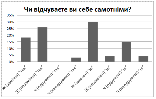 Згідно опитуванню «Чи відчуваєте ви себе самотніми?» нами були отримані наступні результати.