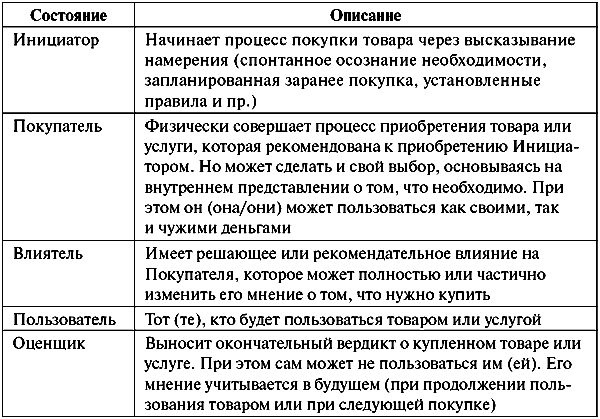 Таблица 3.1. Описание состояний при взаимодействии с товаром/услугой